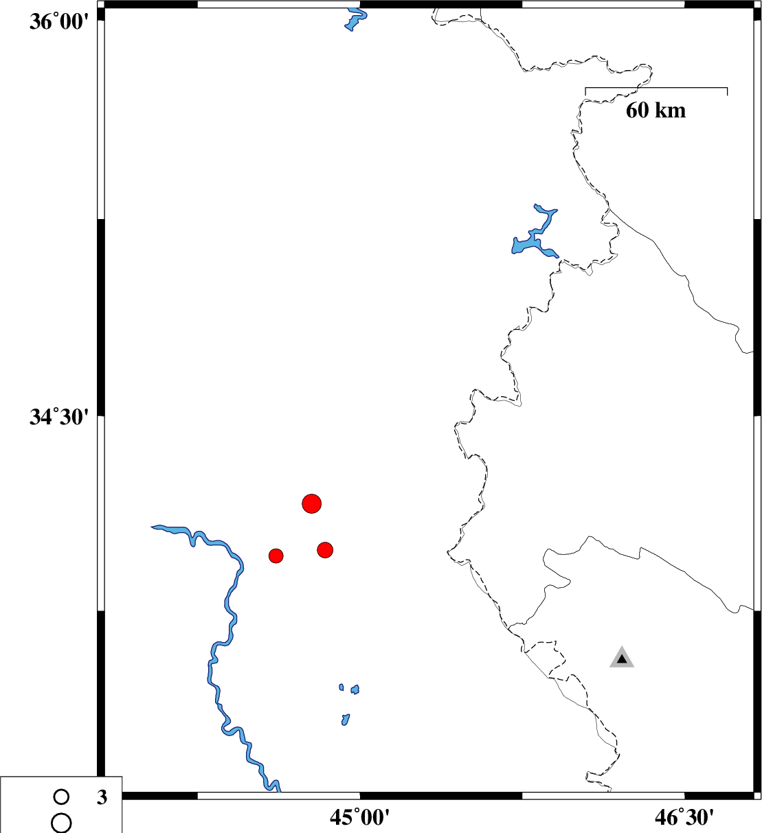 | 2018/03/28 | 17:38:57.2 | 22:08:57.2 | 34.525 | 45.092 | 18 | ML:3 | Iraq, 45 km -West of Qasr-E-Shirin | ||