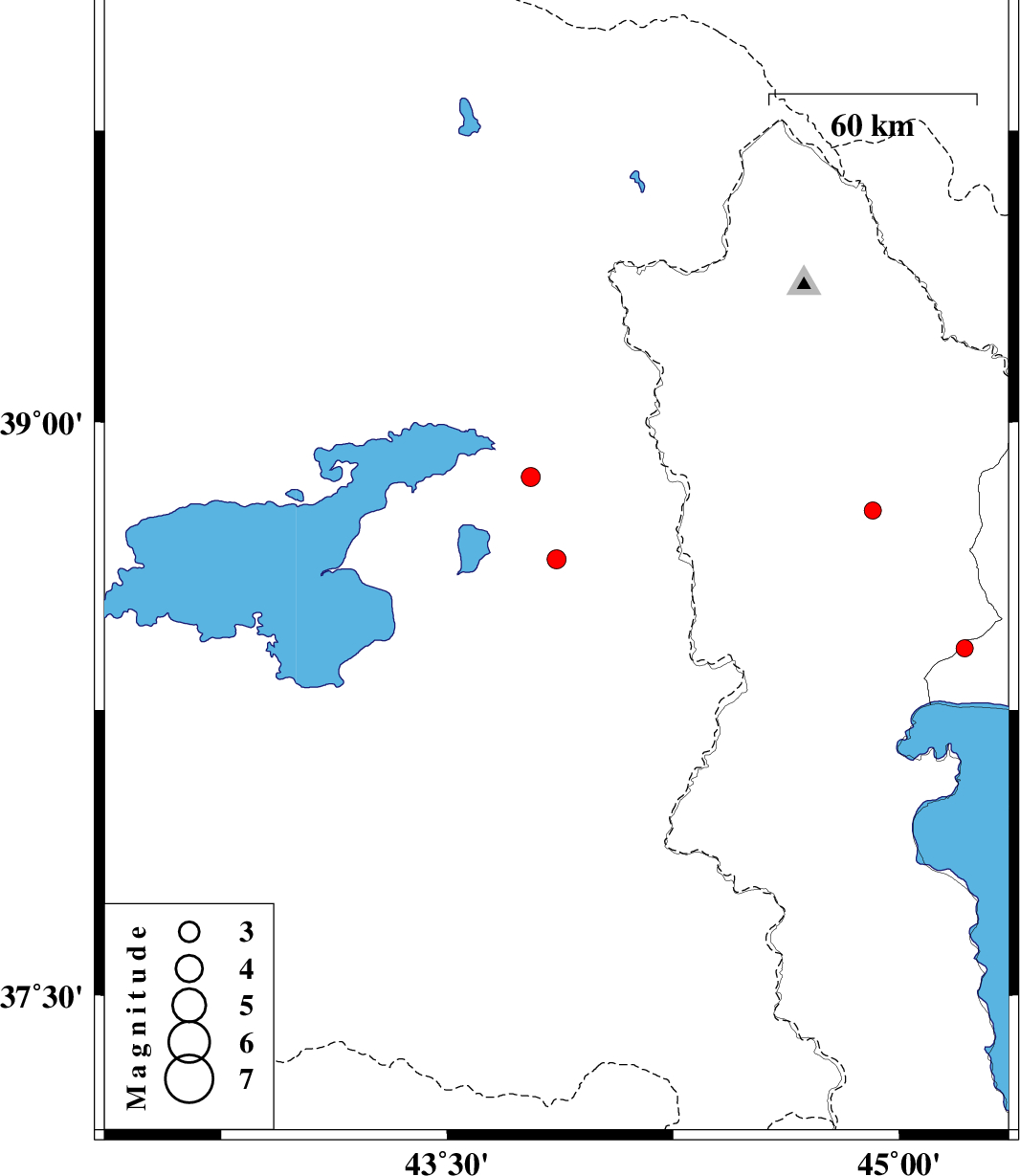 | 2018/05/12 | 13:10:21.7 | 17:40:21.7 | 38.857 | 43.777 | 14 | ML:2.8 | Turkey, 60 km South-West of Seyah Cheshmah | ||