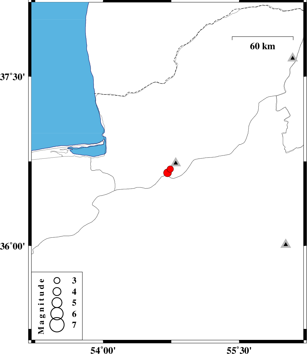 | 2018/05/22 | 13:51:04.5 | 18:21:04.5 | 36.65 | 54.709 | 15 | ML:3.9 | Golestan Province, 32 km South-West of Ali Abad |