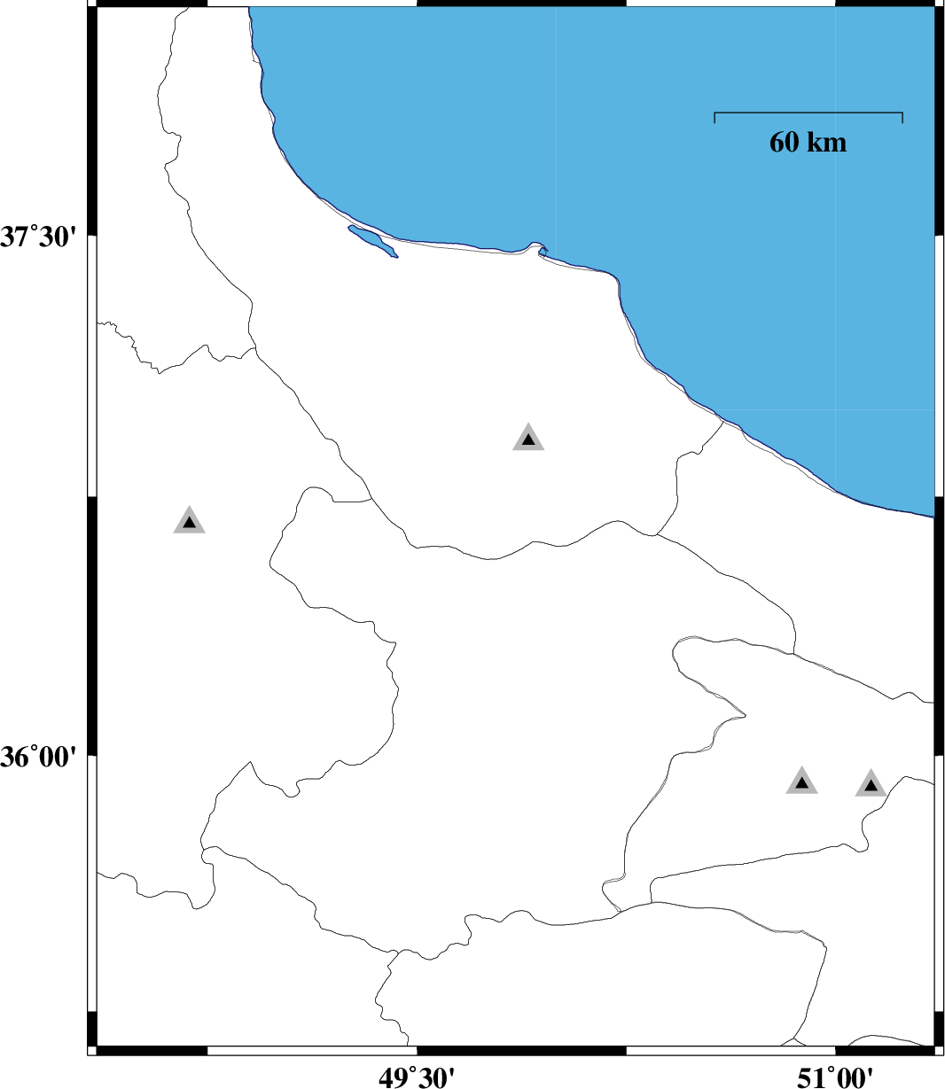 | 2018/05/23 | 05:46:11.3 | 10:16:11.3 | 36.649 | 49.853 | 17 | ML:2.2 | Gilan Province, 56 km South of Siahkal | ||
