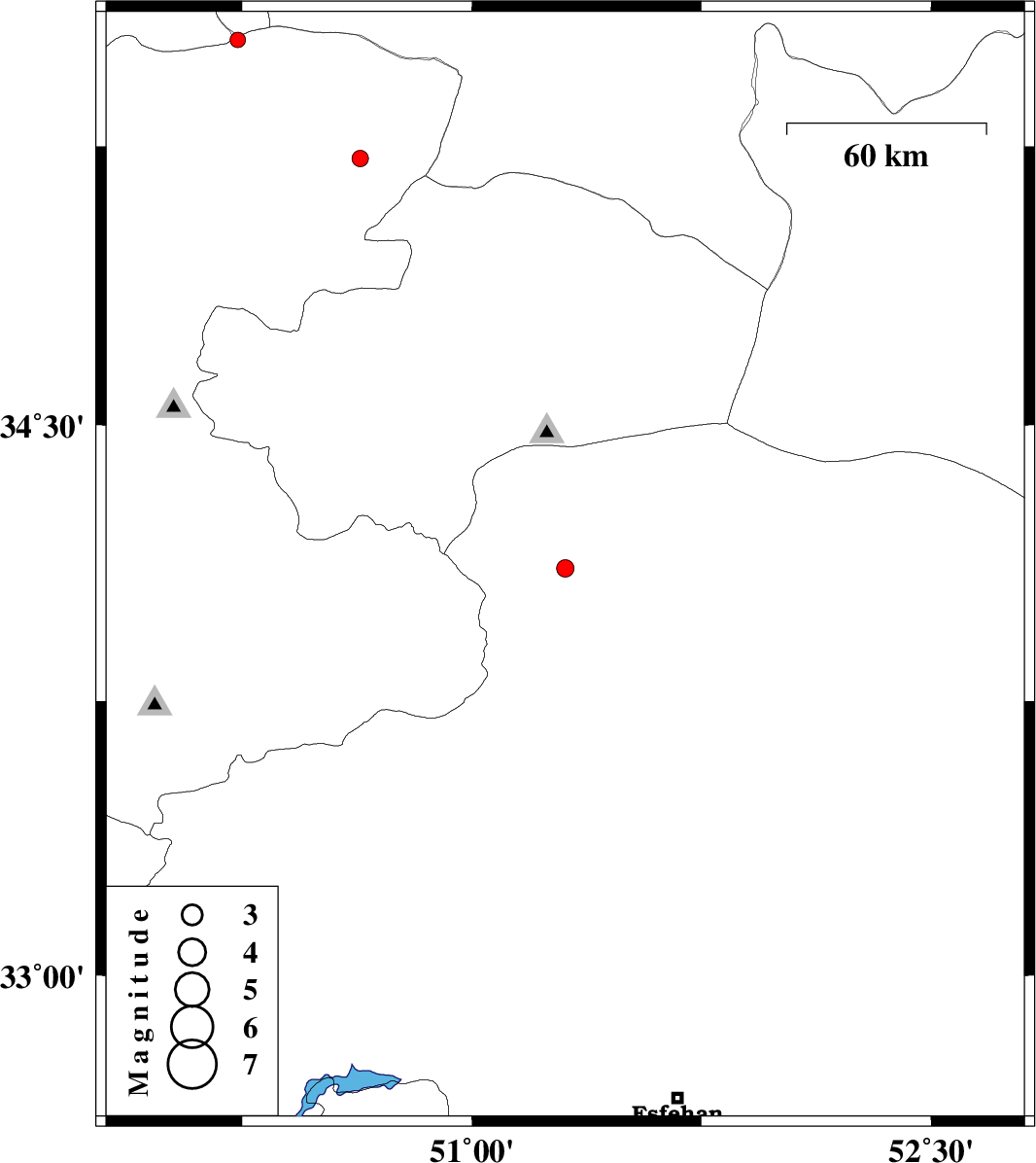 | 2018/05/22 | 16:56:16.8 | 21:26:16.8 | 34.112 | 51.305 | 43 | ML:2.6 | Esfahan Province, 16 km -West of Aran va bidgol | ||