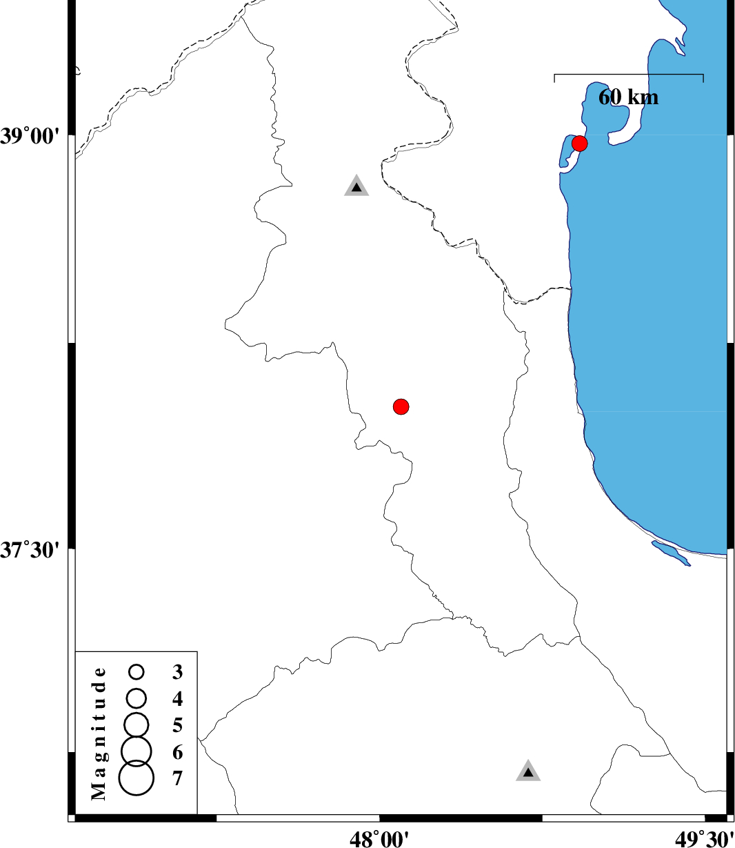| 2018/05/06 | 14:35:18.9 | 19:05:18.9 | 38.969 | 48.922 | 32 | ML:3.2 | Azerbaijan, 61 km North of Astara |