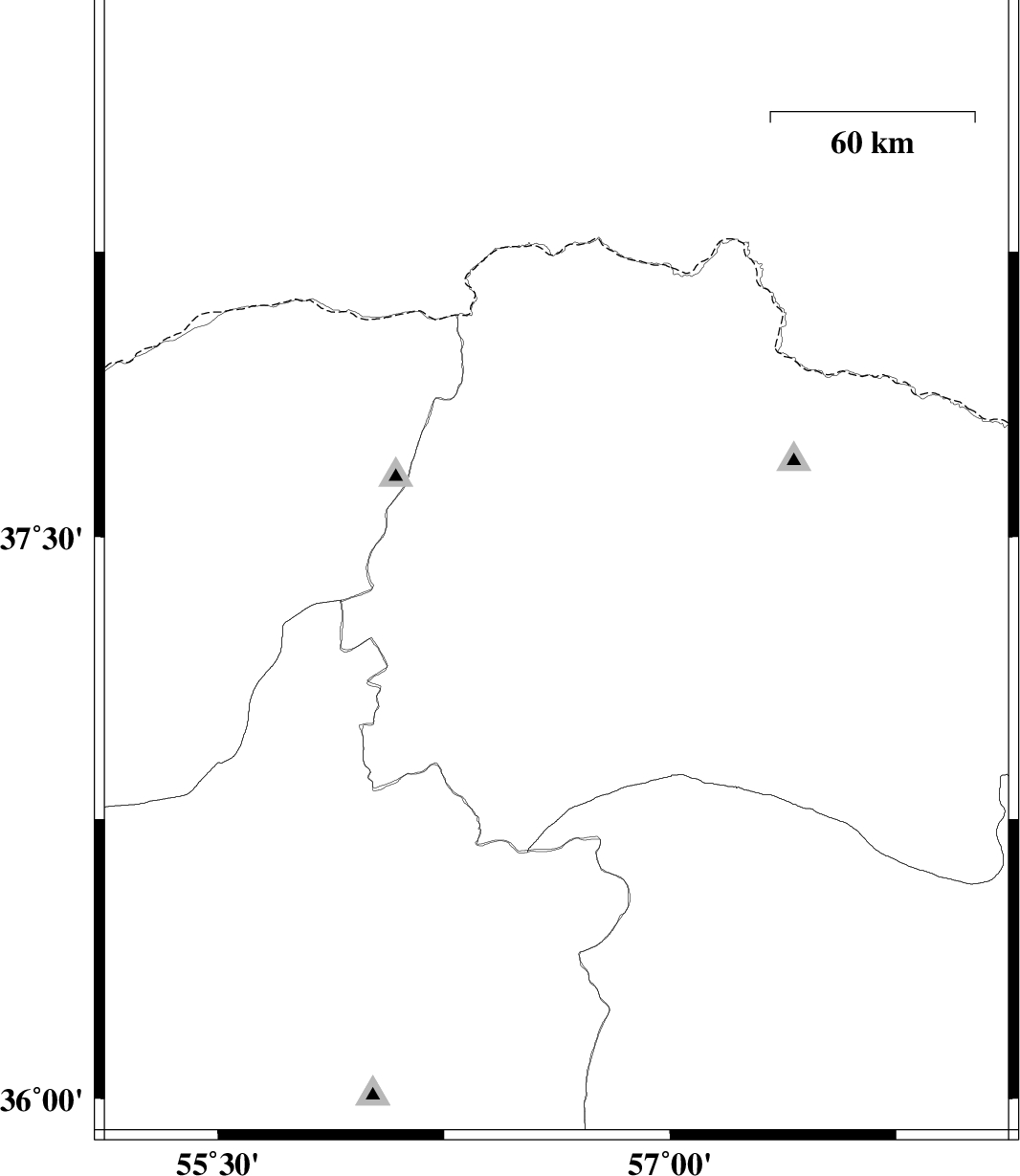 2018/06/15 | 09:32:38.3 | 14:02:38.3 | 37.416 | 56.623 | 14 | ML:2.9 | Khorasan(north) Province, 32 km South-West of Ashkhaneh | ||