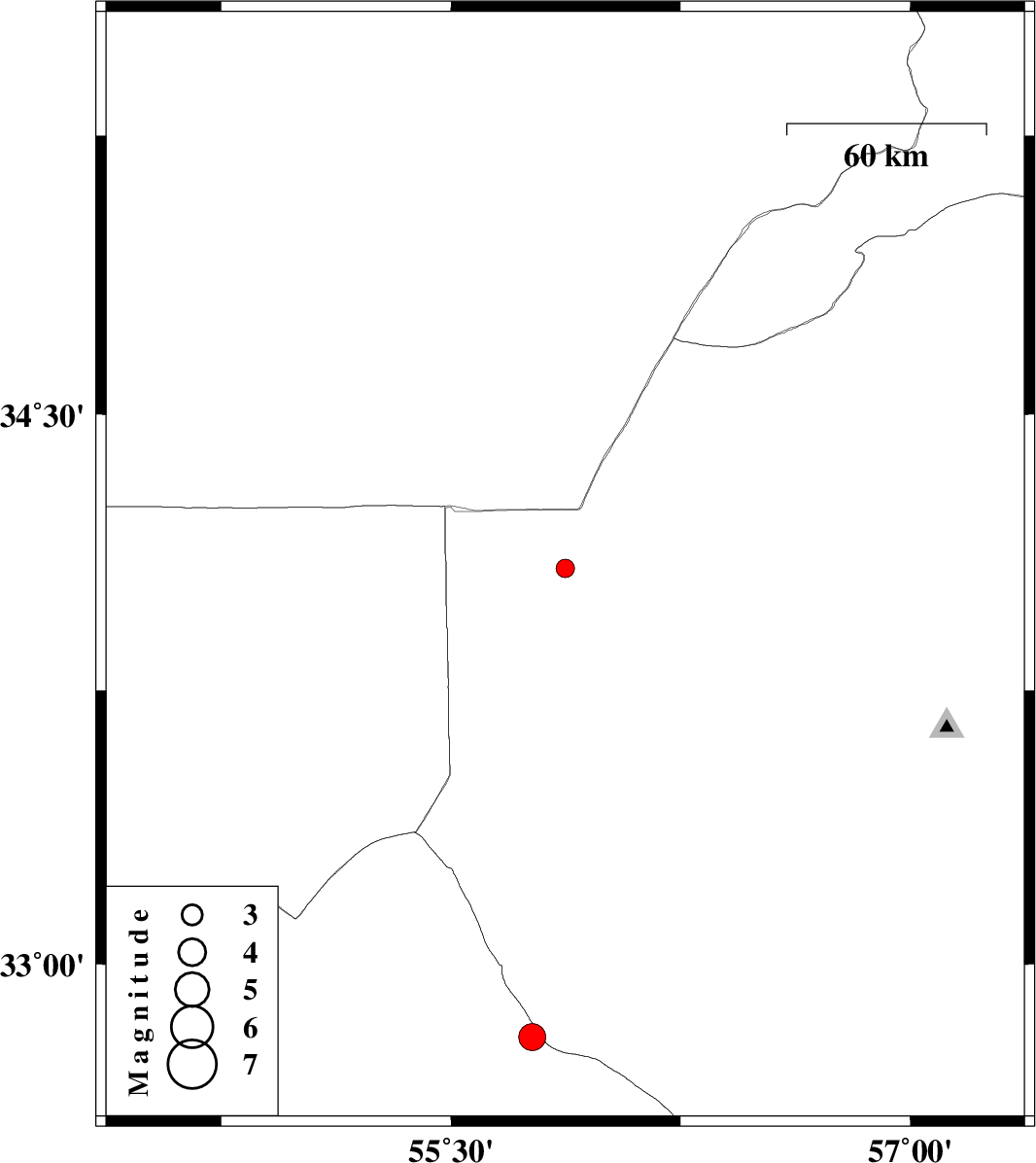 | 2018/06/06 | 10:40:37.5 | 15:10:37.5 | 32.8 | 55.765 | 17 | ML:3.9 | Yazd Province, 138 km North-East of Bafq |