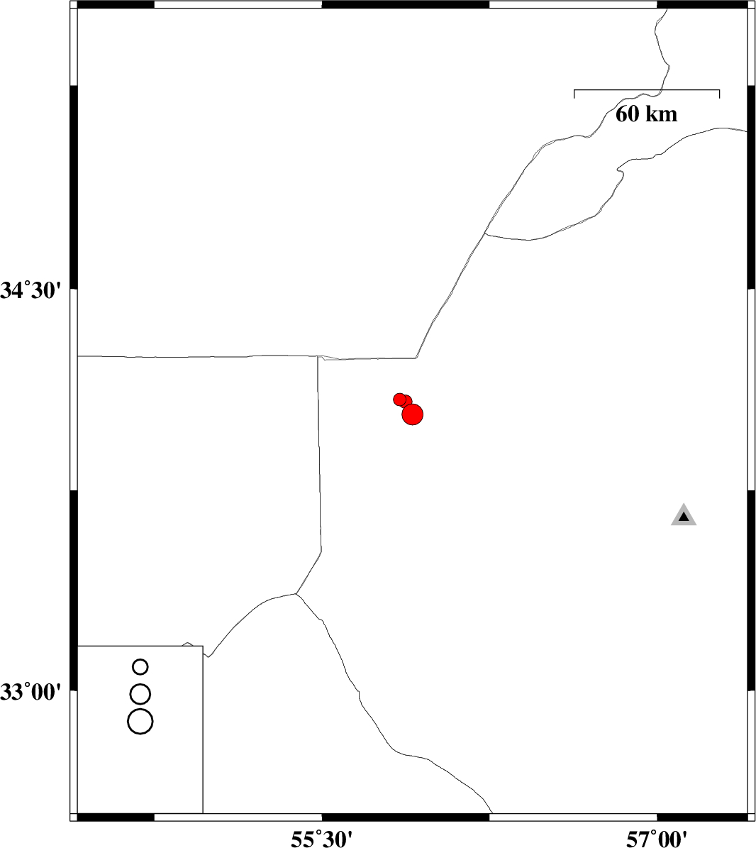 2018/06/19 | 05:42:39.6 | 10:12:39.6 | 34.082 | 55.873 | 14 | ML:2.7 | Yazd Province, 111 km North-West of Tabas |