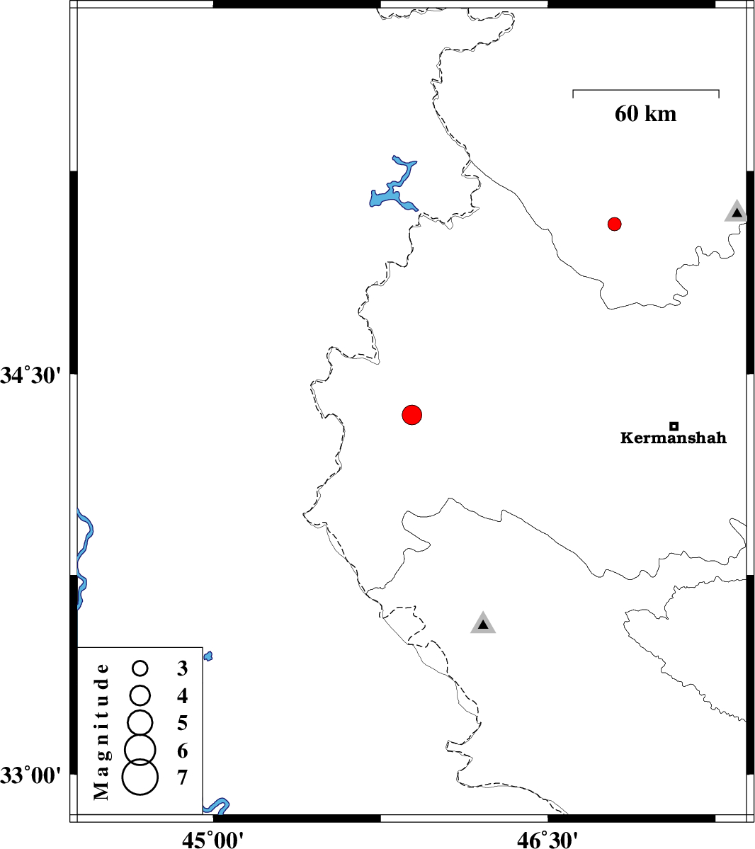 | 2018/06/23 | 21:37:49.5 | 02:07:49.5 | 34.348 | 45.89 | 15 | ML:4 | Kermanshah Province, 13 km South of Sar-e pol-e zahab | ||