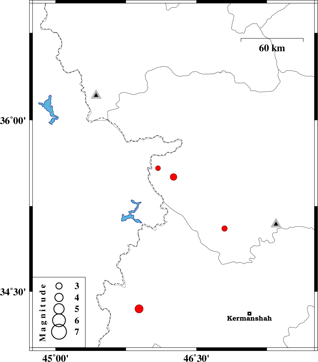| 2018/06/23 | 21:37:49.5 | 02:07:49.5 | 34.348 | 45.89 | 15 | ML:4 | Kermanshah Province, 13 km South of Sar-e pol-e zahab | ||