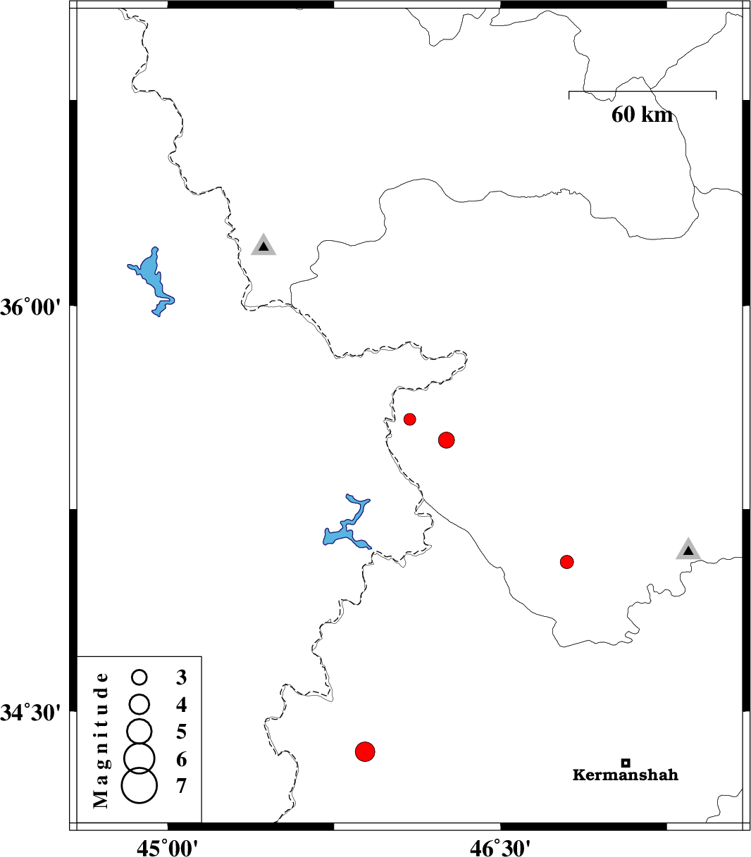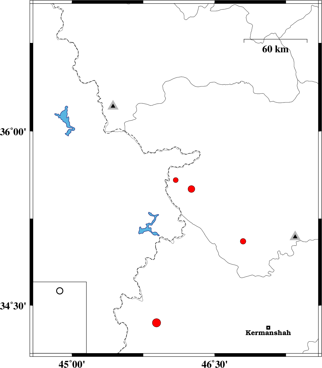 | 2018/06/23 | 21:37:49.5 | 02:07:49.5 | 34.348 | 45.89 | 15 | ML:4 | Kermanshah Province, 13 km South of Sar-e pol-e zahab | ||