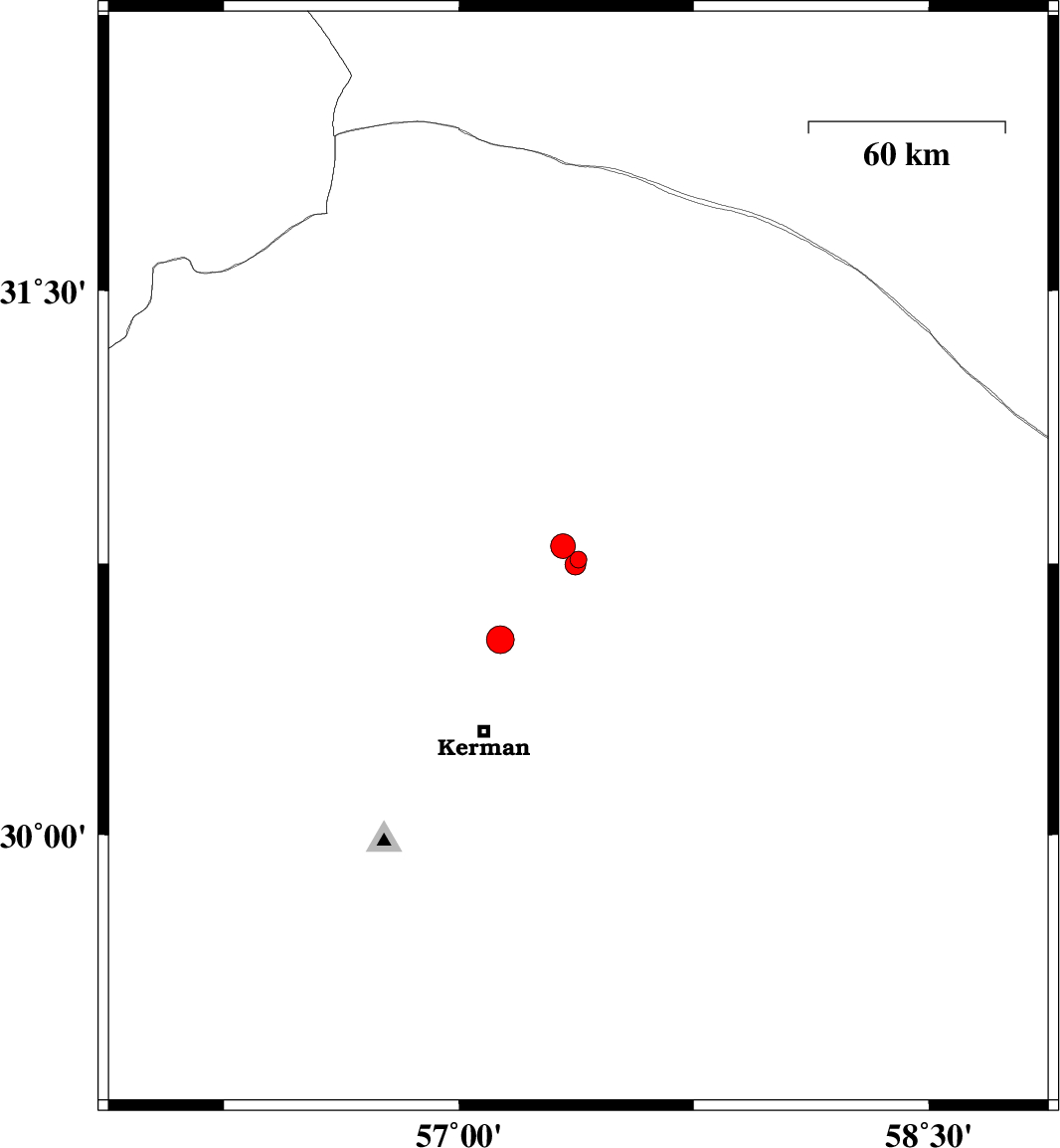 | 2018/06/23 | 00:23:00.2 | 04:53:00.2 | 30.748 | 57.371 | 14 | ML:2.9 | Kerman Province, 58 km North-East of Kerman | ||