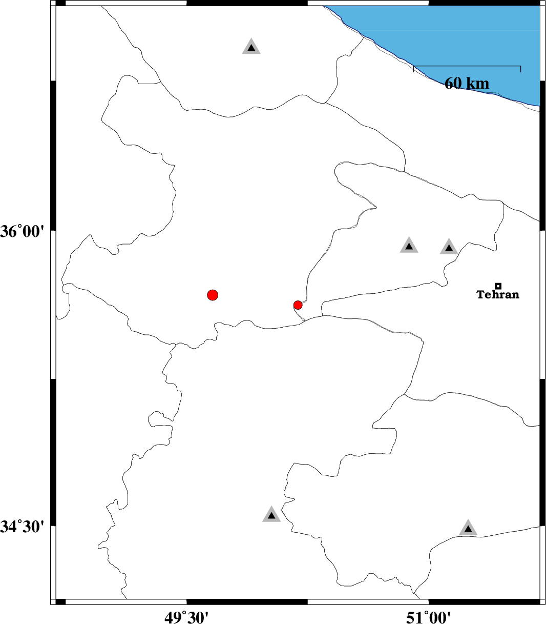 | 2018/06/28 | 22:09:46.6 | 02:39:46.6 | 35.674 | 49.661 | 14 | ML:3 | Ghazvin Province, 43 km South of Takestan |
