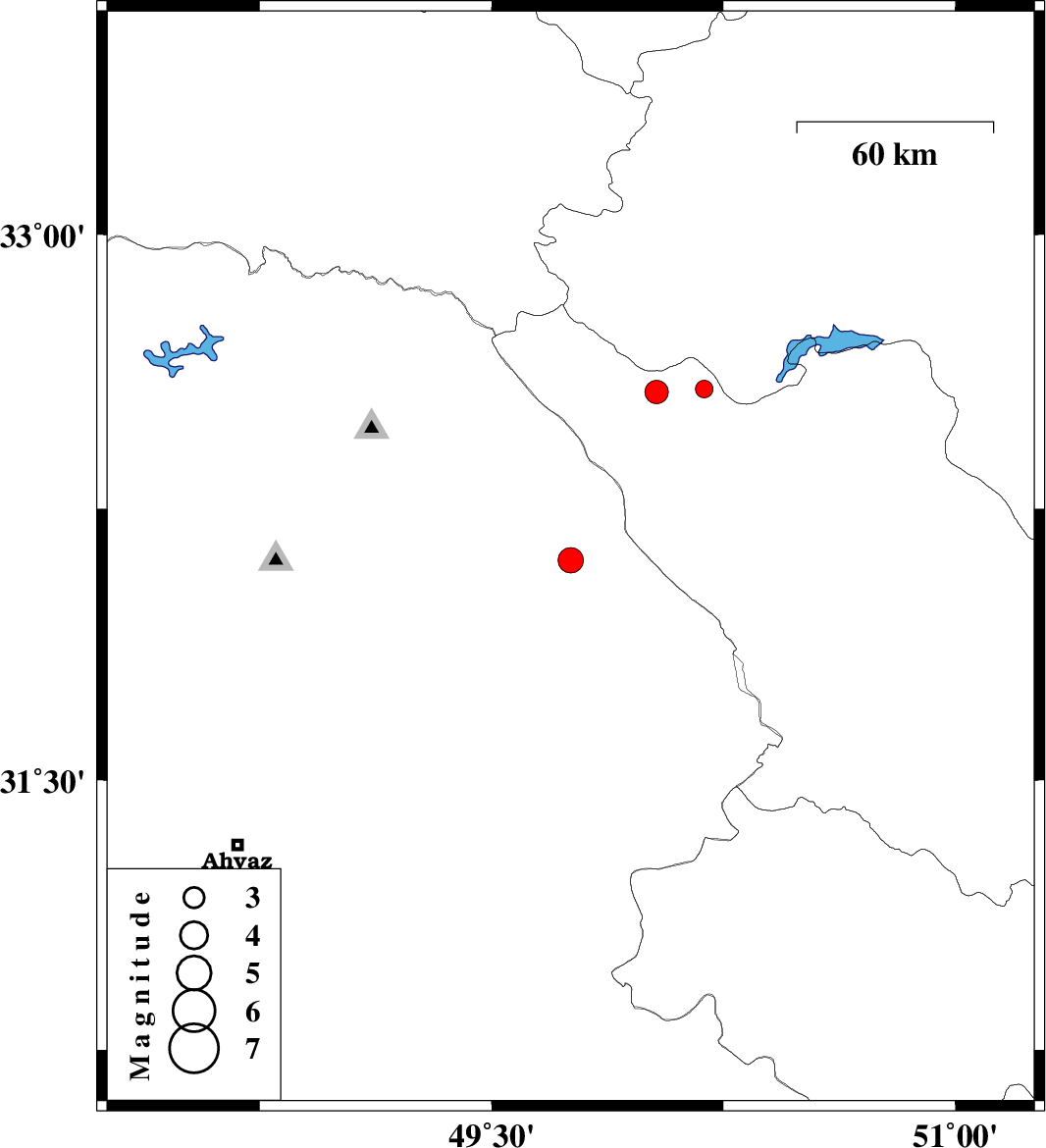 | 2018/07/06 | 17:07:29.1 | 21:37:29.1 | 32.108 | 49.756 | 14 | ML:3.7 | Khoozestan Province, 32 km North-West of Izeh | ||