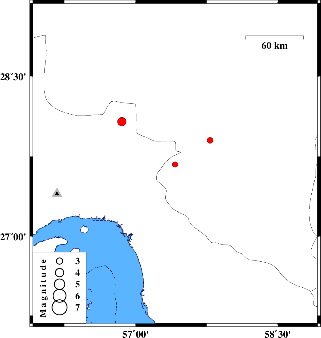 | 2018/07/01 | 19:25:45.9 | 23:55:45.9 | 27.901 | 57.787 | 18 | ML:2.8 | Kerman Province, 11 km of Kahnuj |