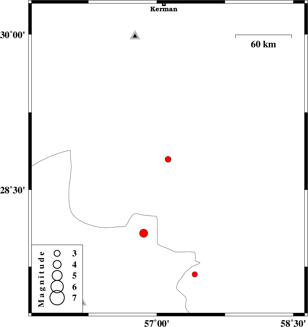 | 2018/07/09 | 08:24:36.1 | 12:54:36.1 | 28.796 | 57.124 | 14 | ML:3 | Kerman Province, 62 km North-West of Jiroft | ||