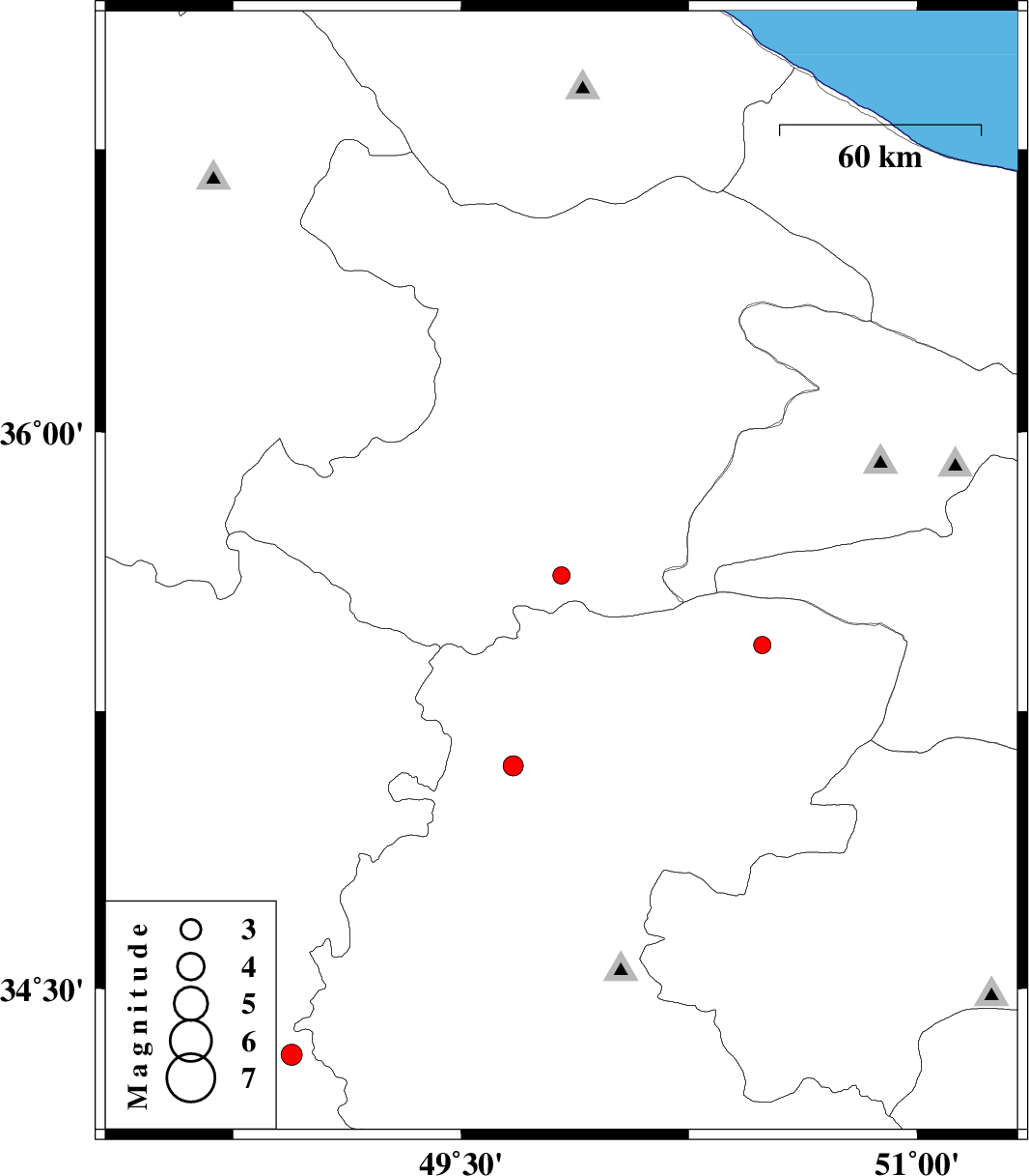 | 2018/07/06 | 16:01:25.8 | 20:31:25.8 | 35.429 | 50.49 | 15 | ML:2.6 | Markazi Province, 47 km North-East of Saveh |