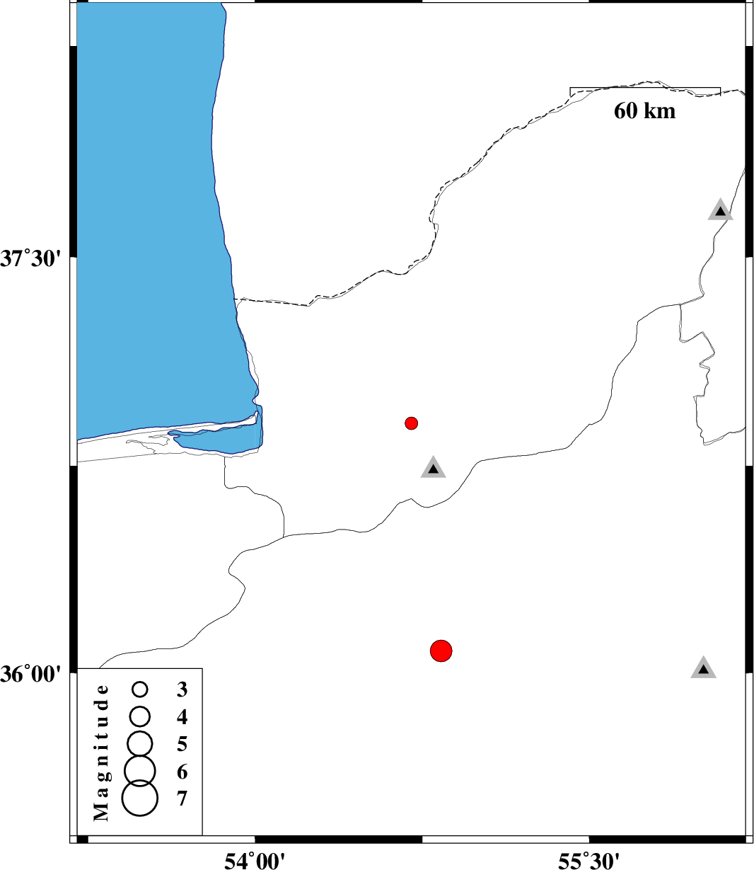 | 2018/07/09 | 19:38:41.3 | 00:08:41.3 | 36.904 | 54.701 | 14 | ML:2.5 | Golestan Province, 15 km -West of Ali Abad | ||