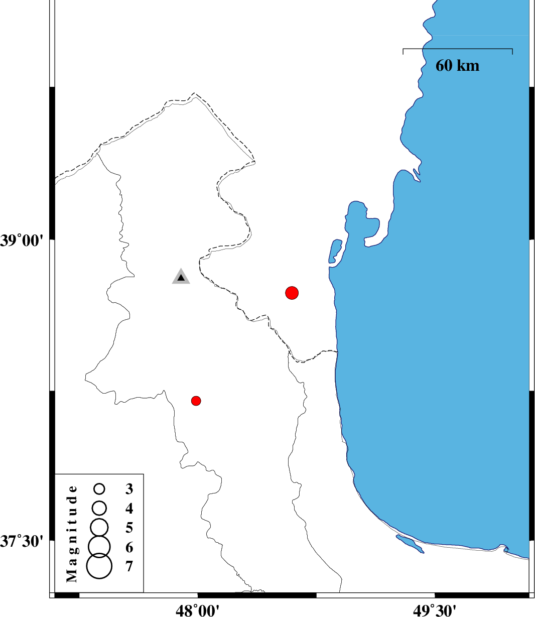 | 2018/08/12 | 06:24:45.2 | 10:54:45.2 | 38.2 | 47.988 | 15 | ML:2.7 | Ardebil Province, 19 km North-West of Nir |