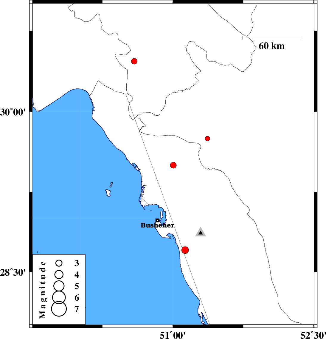| 2018/08/11 | 14:46:06.5 | 19:16:06.5 | 28.705 | 51.132 | 11 | ML:3.4 | Bushehr Province, 24 km -West of Khormog | ||