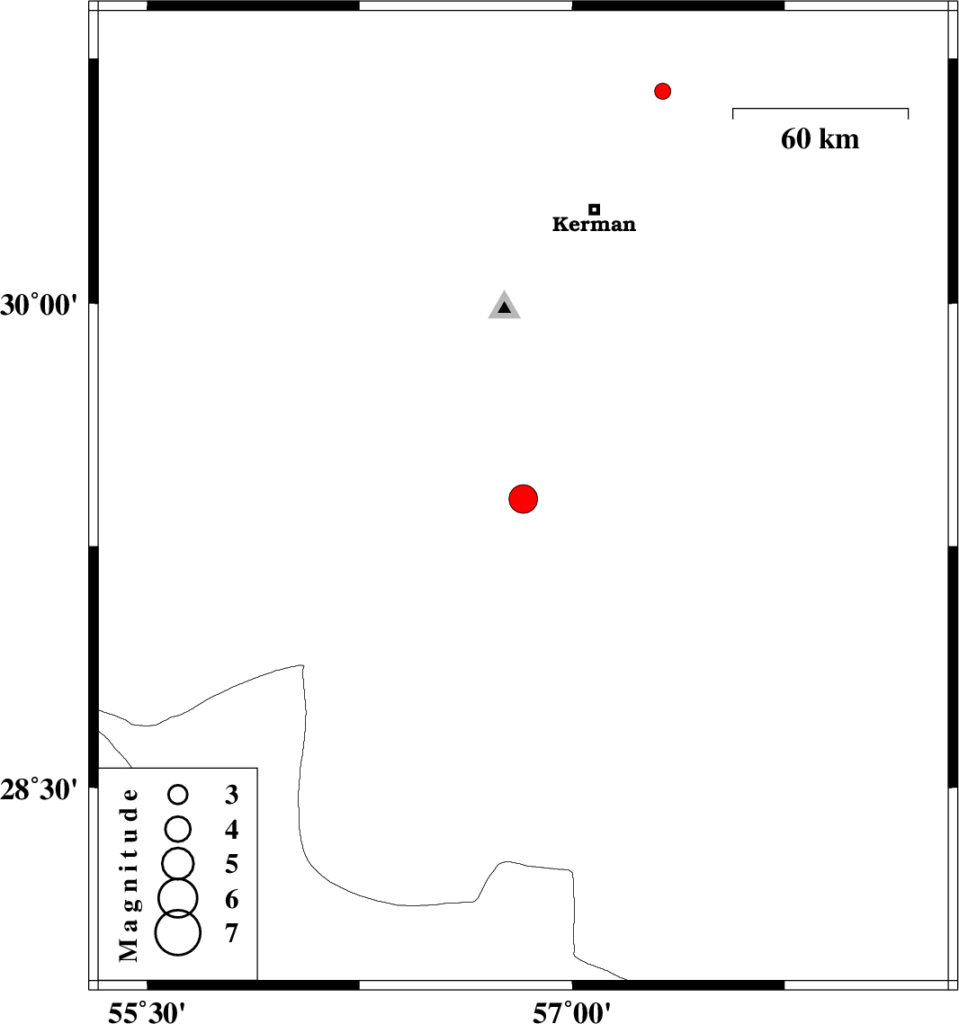 | 2018/08/17 | 02:39:06.6 | 07:09:06.6 | 30.65 | 57.319 | 14 | ML:2.6 | Kerman Province, 46 km North-East of Kerman |