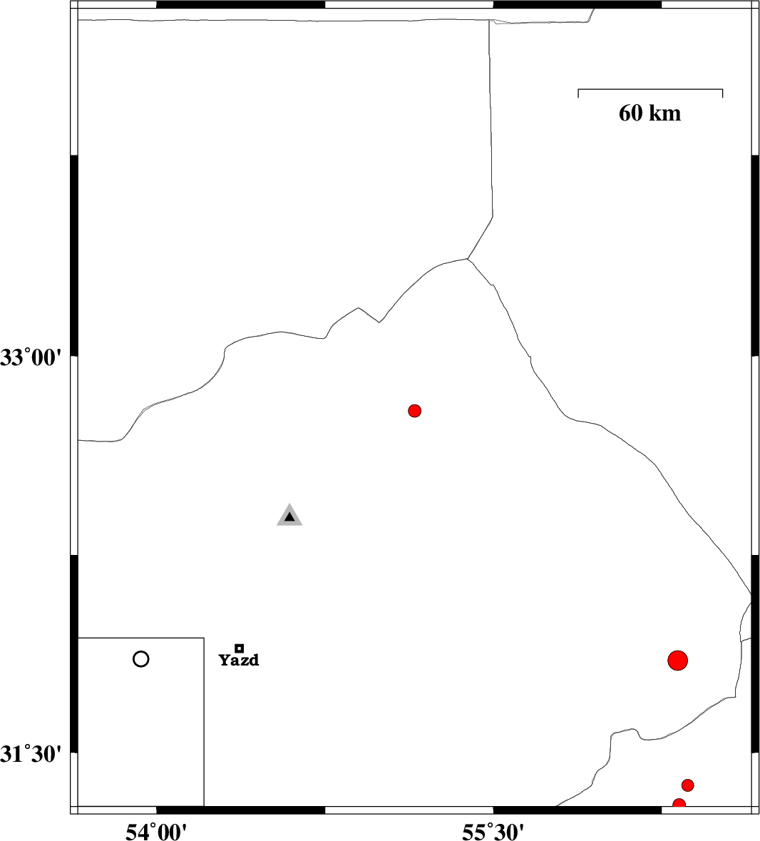 2018/10/08 | 05:00:21.1 | 08:30:21.1 | 32.794 | 55.149 | 14 | ML:2.5 | Yazd Province, 134 km North-West of Bafq | ||