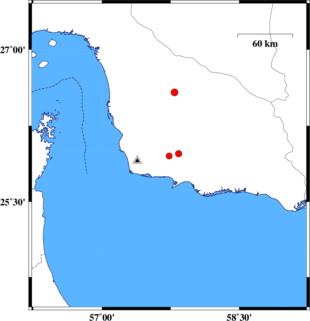 | 2018/10/04 | 03:10:04.4 | 06:40:04.4 | 25.976 | 57.838 | 15 | ML:3.2 | Hormozgan Province, 39 km North of Jask |