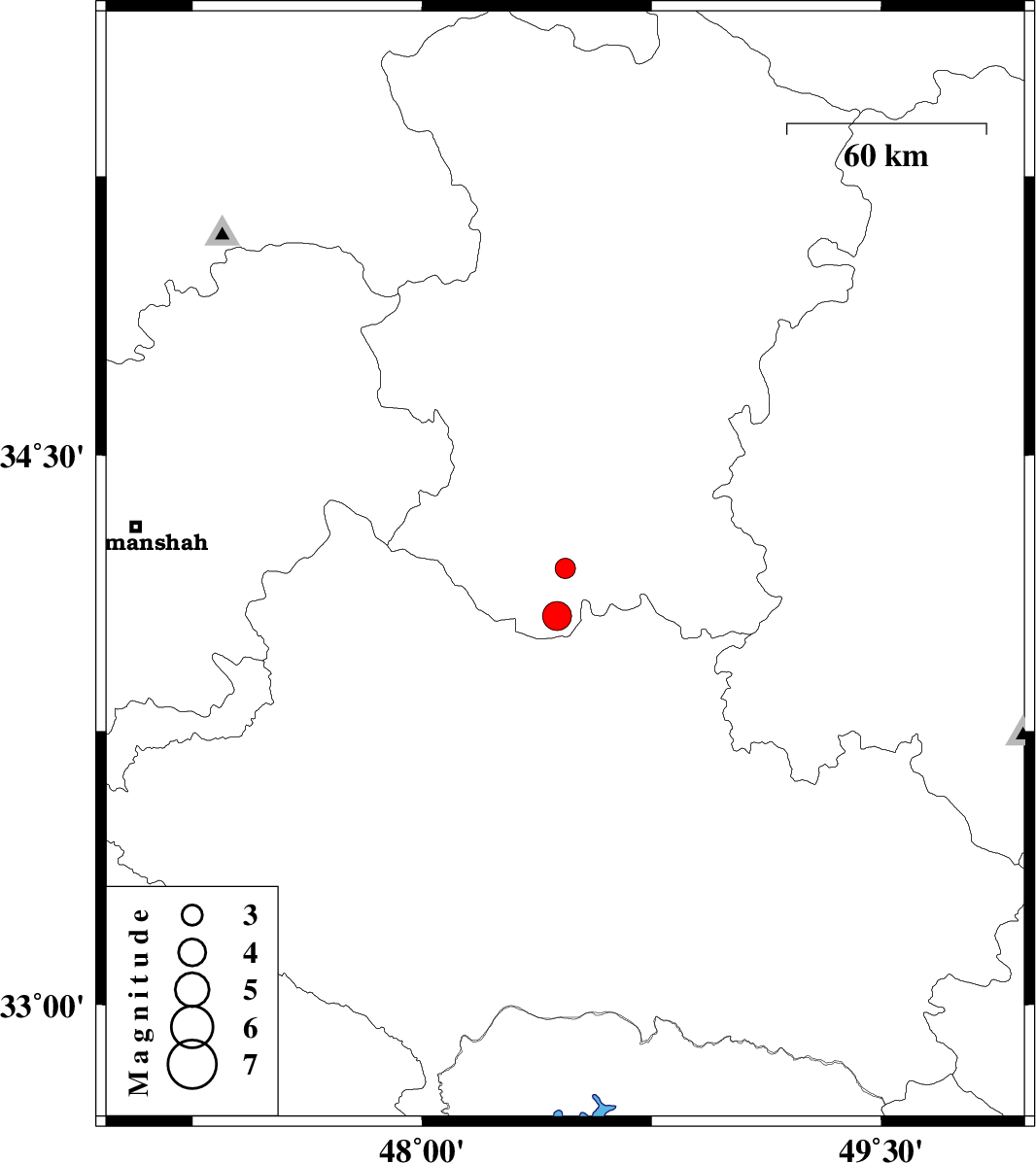 | 2018/10/22 | 03:49:19.1 | 07:19:19.1 | 34.193 | 48.468 | 15 | ML:3 | Hamedan Province, 10 km -East of Nahavand | ||