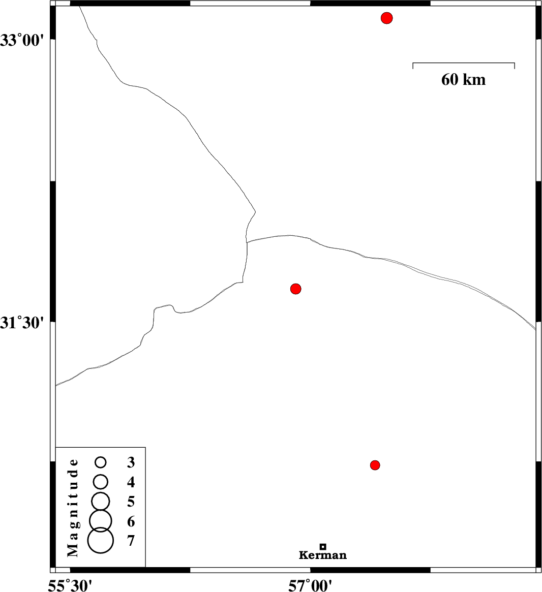 | 2018/10/12 | 06:09:06.5 | 09:39:06.5 | 30.729 | 57.403 | 14 | ML:2.7 | Kerman Province, 58 km North-East of Kerman |