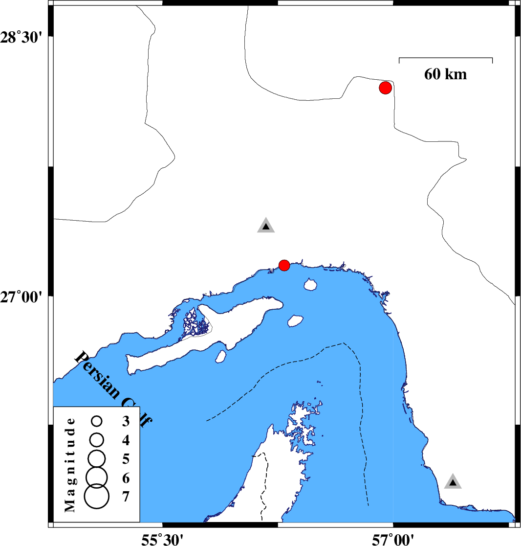 2018/11/06 | 04:14:42.8 | 07:44:42.8 | 28.203 | 56.949 | 14 | ML:3.7 | Hormozgan Province, 78 km North-West of Kahnuj |