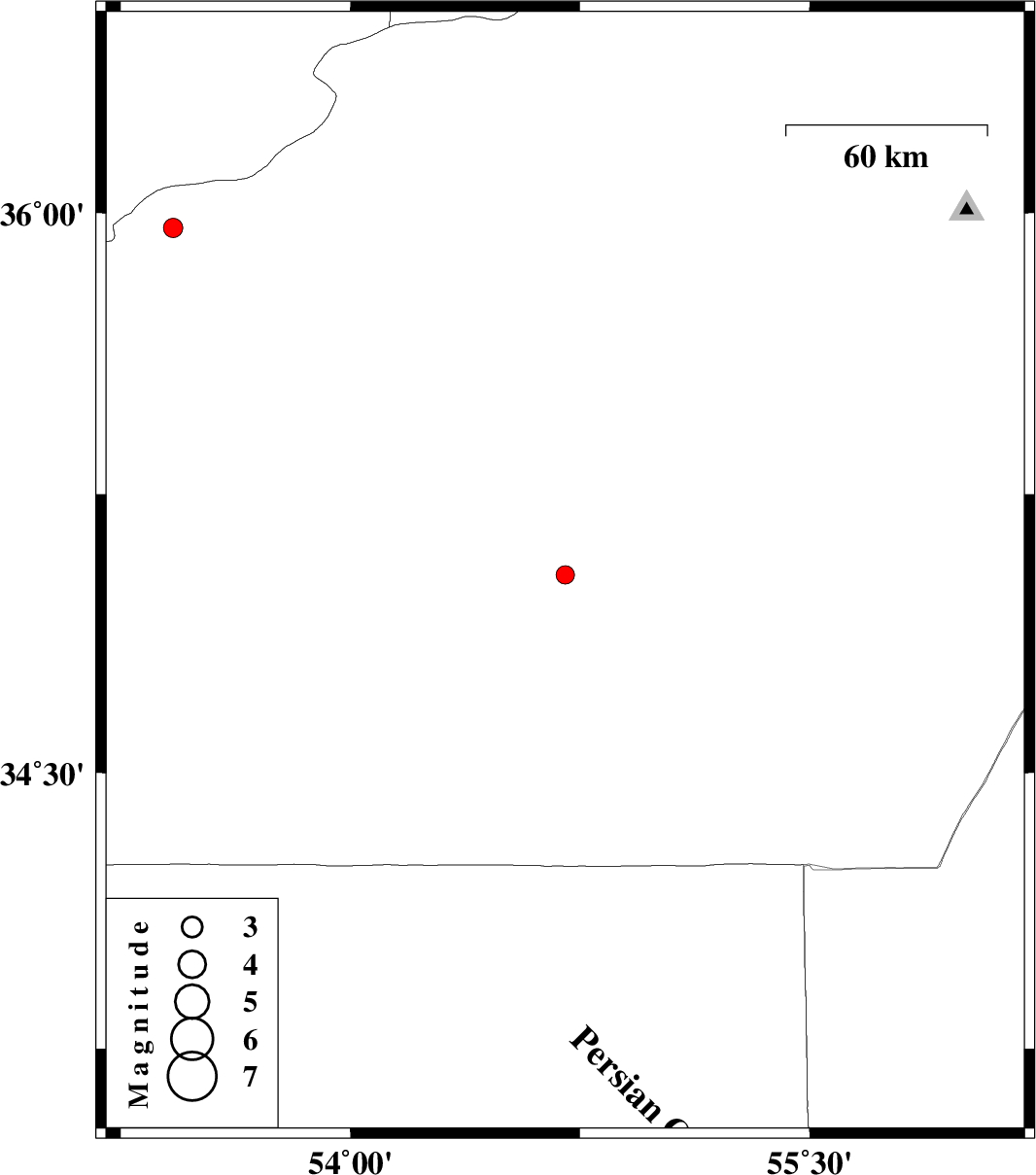 2018/11/14 | 02:13:28.9 | 05:43:28.9 | 35.961 | 53.421 | 15 | ML:2.8 | Semnan Province, 44 km North of Semnan |