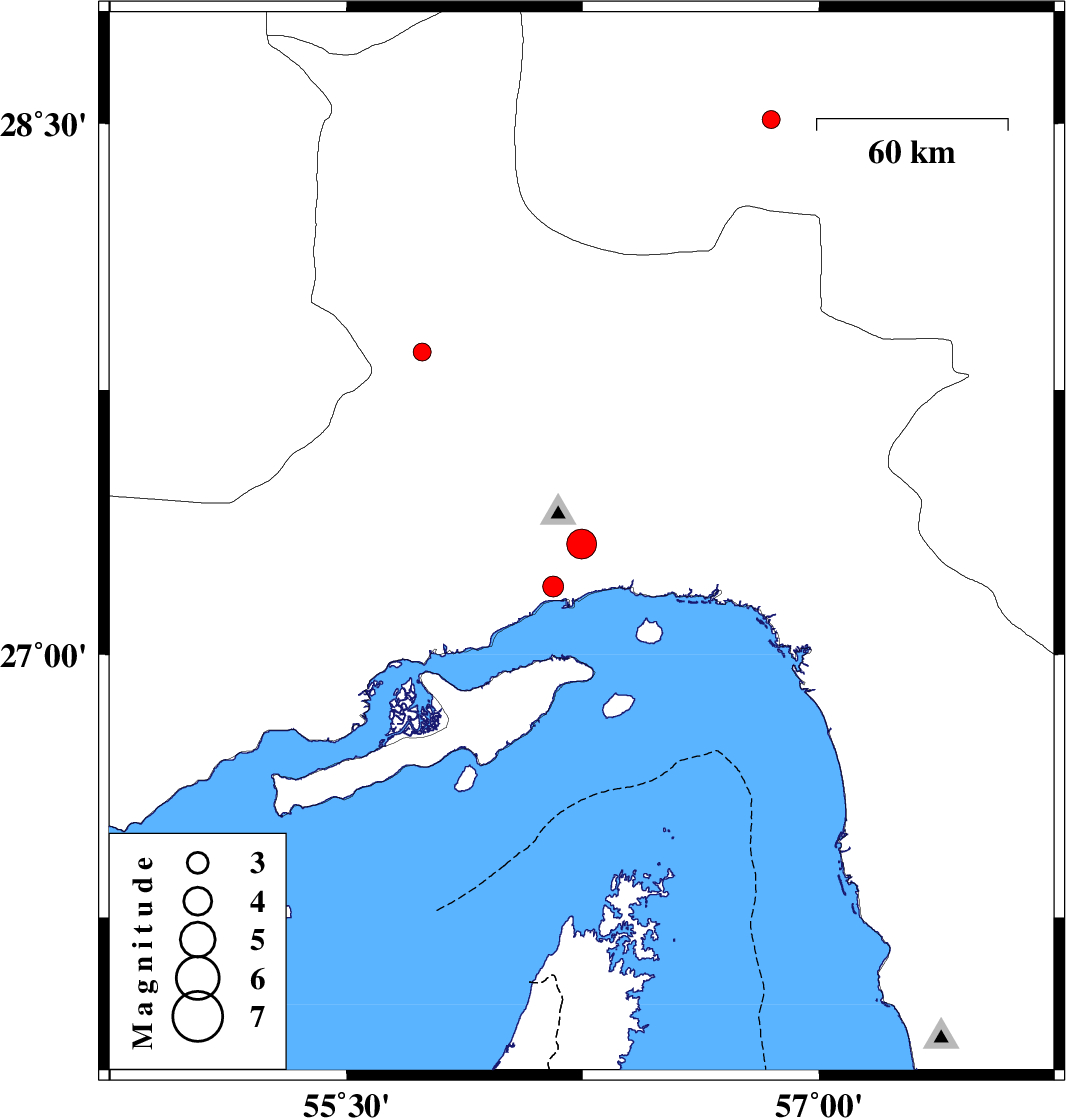 | 2018/12/04 | 02:19:27.3 | 05:49:27.3 | 27.194 | 56.155 | 11 | ML:2.9 | Hormozgan Province, 13 km -West of Bandar-e abbas | ||