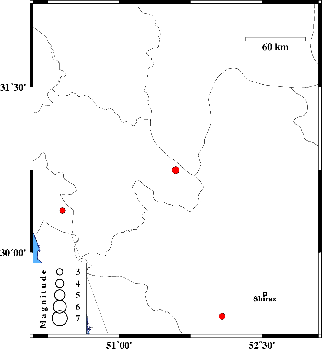 | 2018/12/16 | 04:05:58.0 | 07:35:58.0 | 29.413 | 52.081 | 15 | ML:2.9 | Fars Province, 60 km North of Farashband |