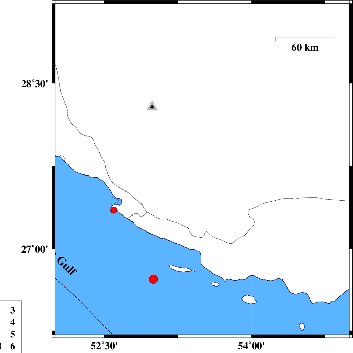 2018/12/26 | 13:05:21.2 | 16:35:21.2 | 27.714 | 53.498 | 7 | ML:3 | Fars Province, 53 km North-East of Lamerd | ||