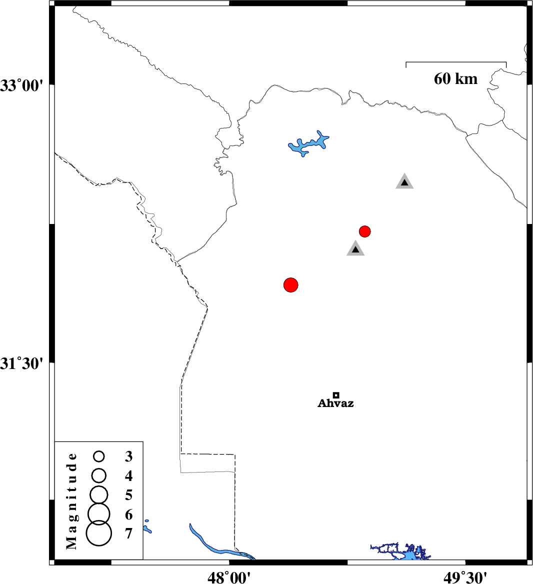 | 2019/04/26 | 04:30:19.2 | 09:00:19.2 | 32.21 | 48.86 | 7 | ML:3.2 | Khoozestan Province, 19 km North of Shushtar |