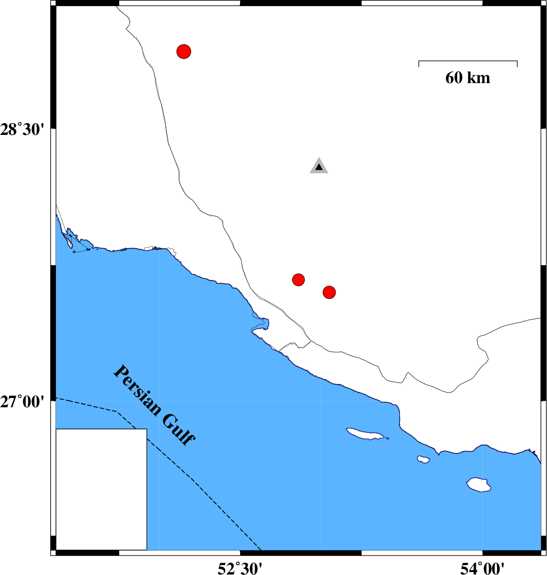 | 2019/05/26 | 20:19:49.3 | 00:49:49.3 | 27.6 | 53.05 | 12 | ML:3.5 | Fars Province, 17 km -East of Mehr | ||