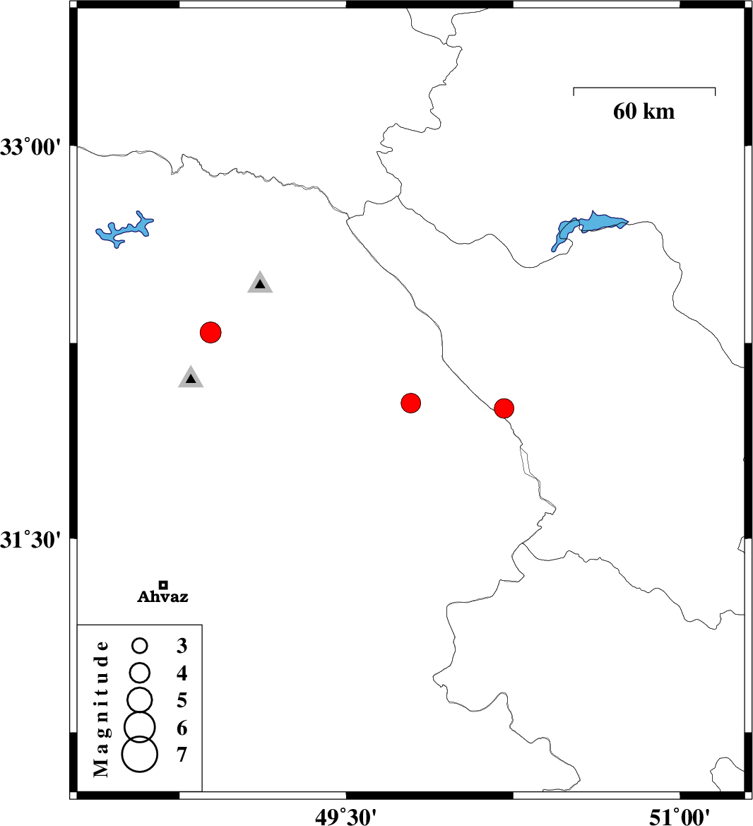 | 2019/06/01 | 04:34:04.0 | 09:04:04.0 | 32.29 | 48.89 | 14 | ML:4.3 | Khoozestan Province, 28 km North of Shushtar | ||