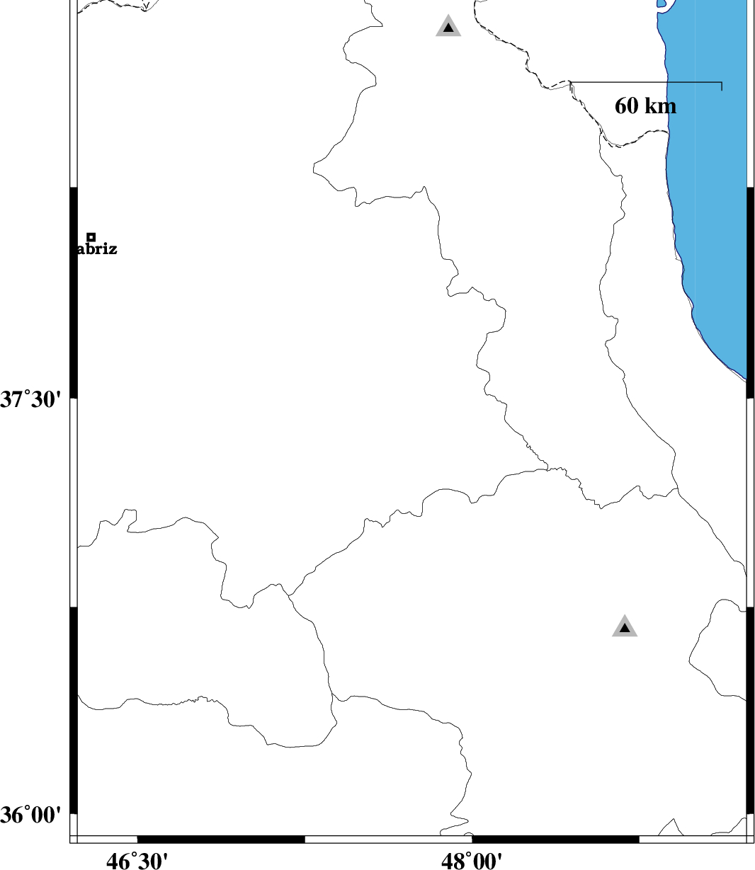 | 2019/06/07 | 21:42:04.2 | 02:12:04.2 | 38.36 | 46.57 | 10 | ML:4.2 | Azarbaijan Sharghi Province, 40 km North-East of Tabriz |