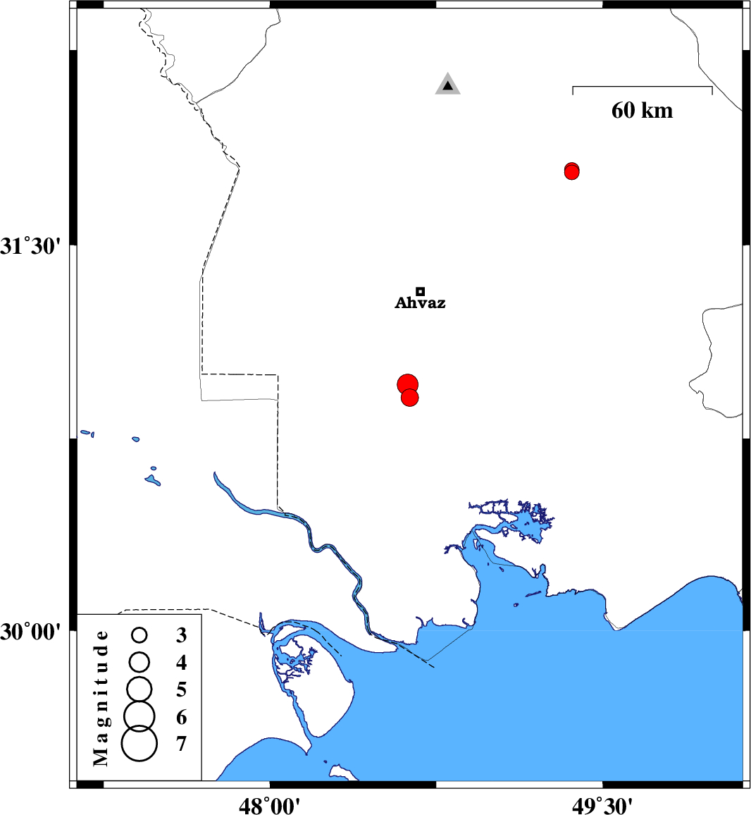 | 2019/07/17 | 22:53:08.2 | 03:23:08.2 | 30.91 | 48.63 | 10 | ML:3.5 | Khoozestan Province, 29 km North of Shadegan | ||