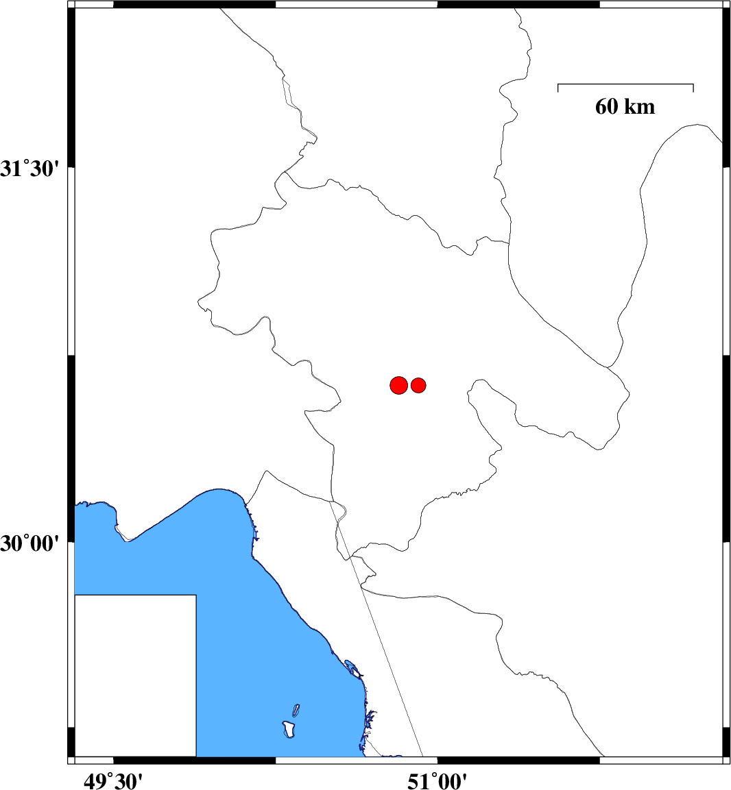 | 2019/08/27 | 12:28:30.8 | 16:58:30.8 | 30.63 | 50.91 | 14 | ML:3.1 | Kohkiluieh va boyerahmad Province, 33 km North-East of Dogonbadan | ||