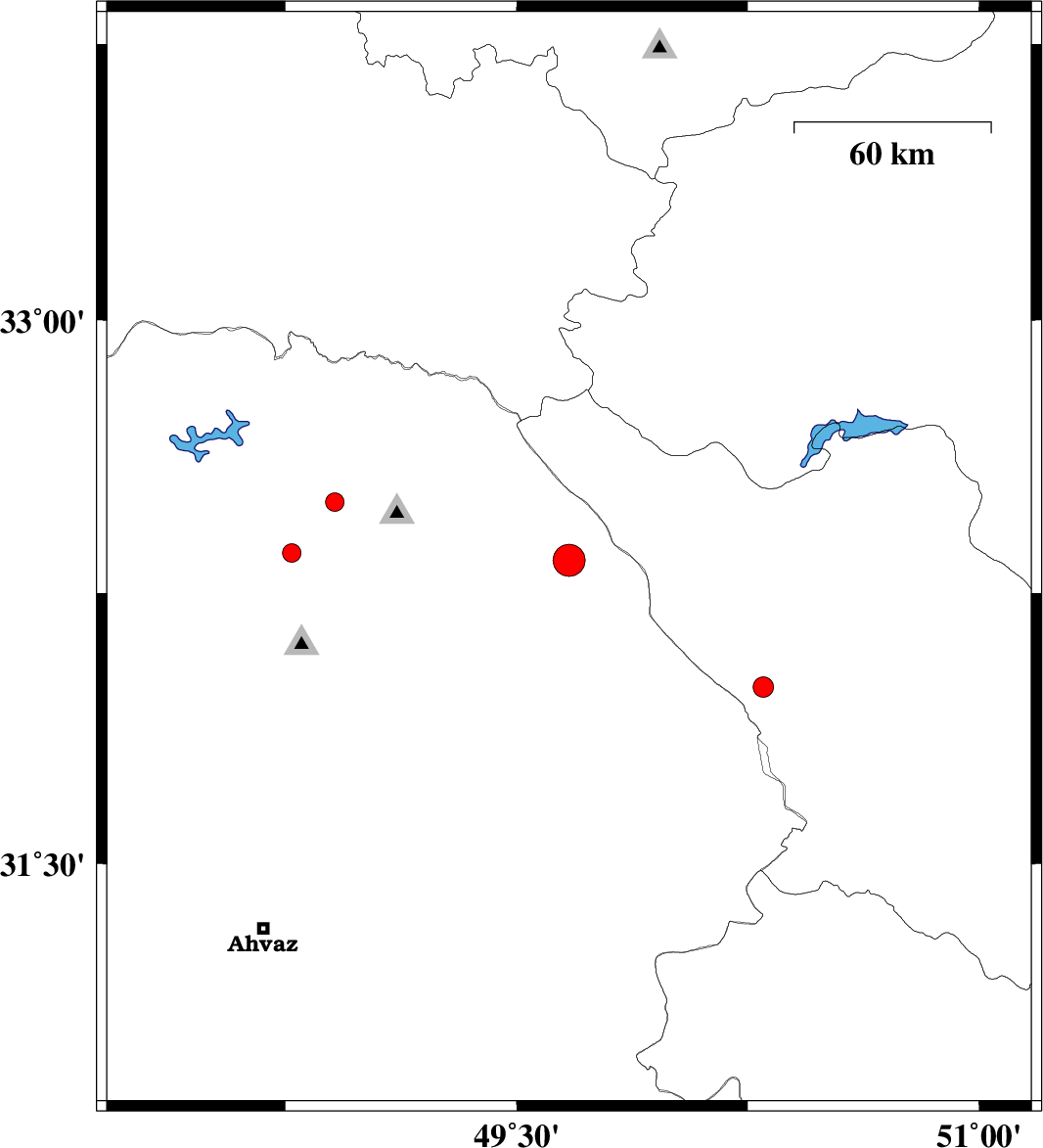 | 2019/10/05 | 06:32:06.8 | 10:02:06.8 | 32.36 | 48.77 | 14 | ML:2.7 | Khoozestan Province, 32 km -West of Lali |