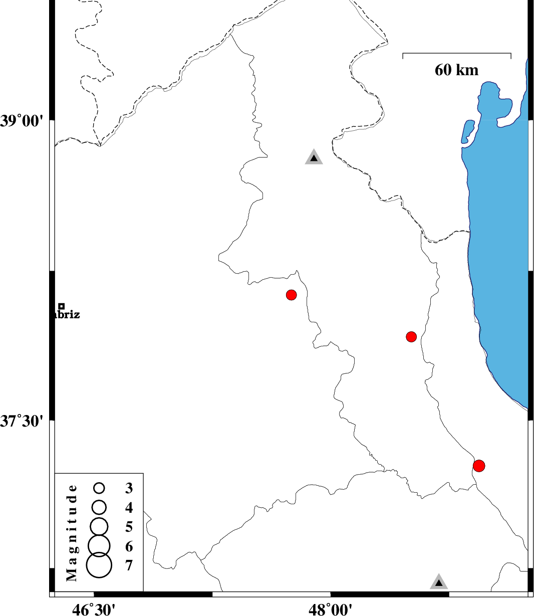 | 2019/10/12 | 05:16:00.7 | 08:46:00.7 | 38.13 | 47.75 | 6 | ML:2.9 | Azarbaijan Sharghi Province, 31 km South of Meshgin Shahr | ||