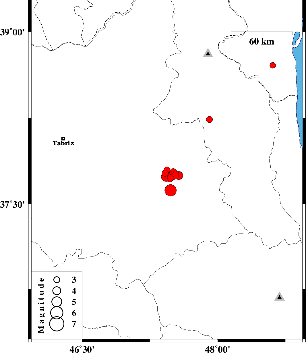 2019/11/07 22:47:05.3 02:17:05.3 37.6247.486 ML:5.8 Azarbaijan Sharghi Province, 35 km South of Sarab