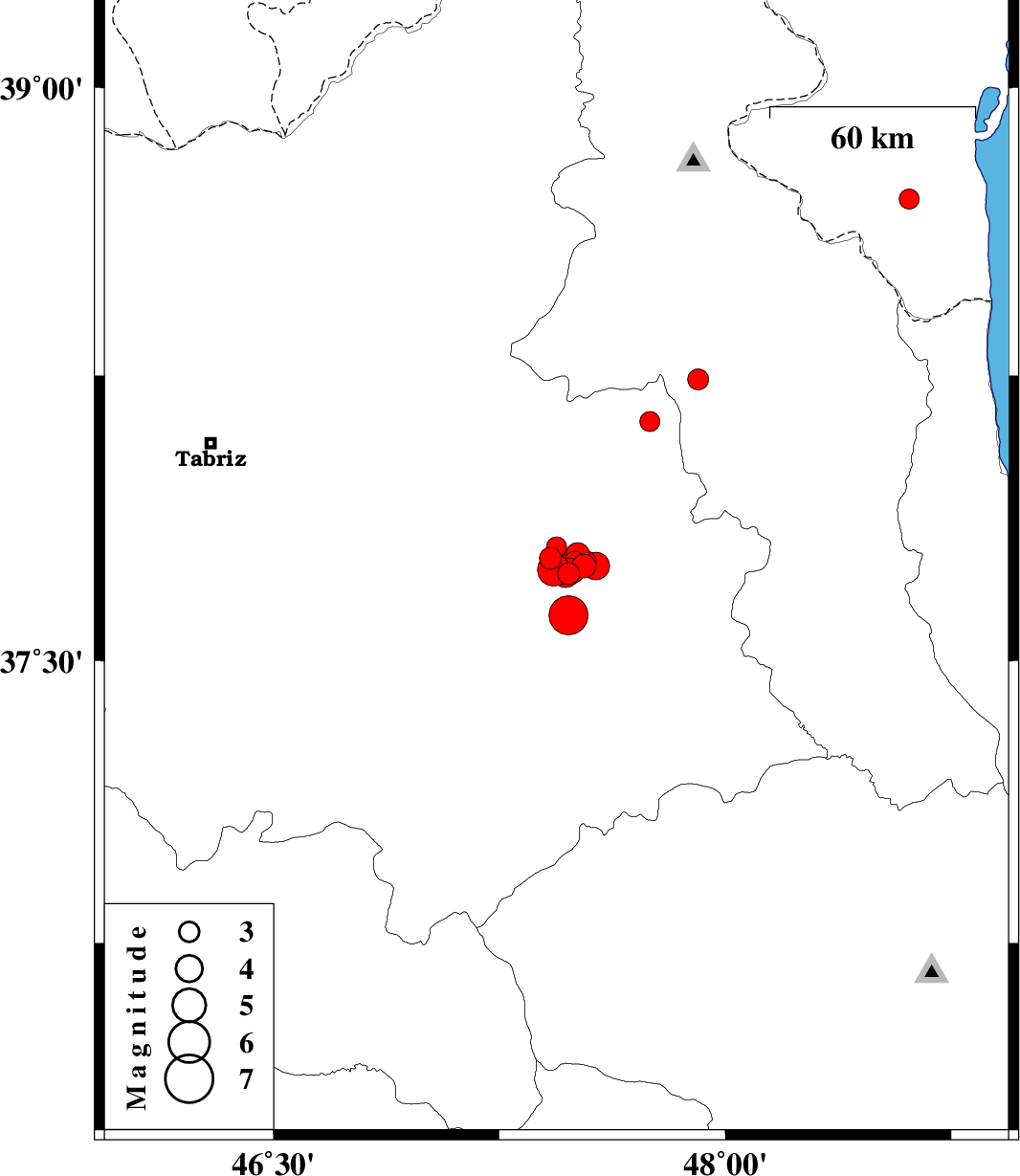 2019/11/07 22:47:05.3 02:17:05.3 37.6247.486 ML:5.8 Azarbaijan Sharghi Province, 35 km South of Sarab