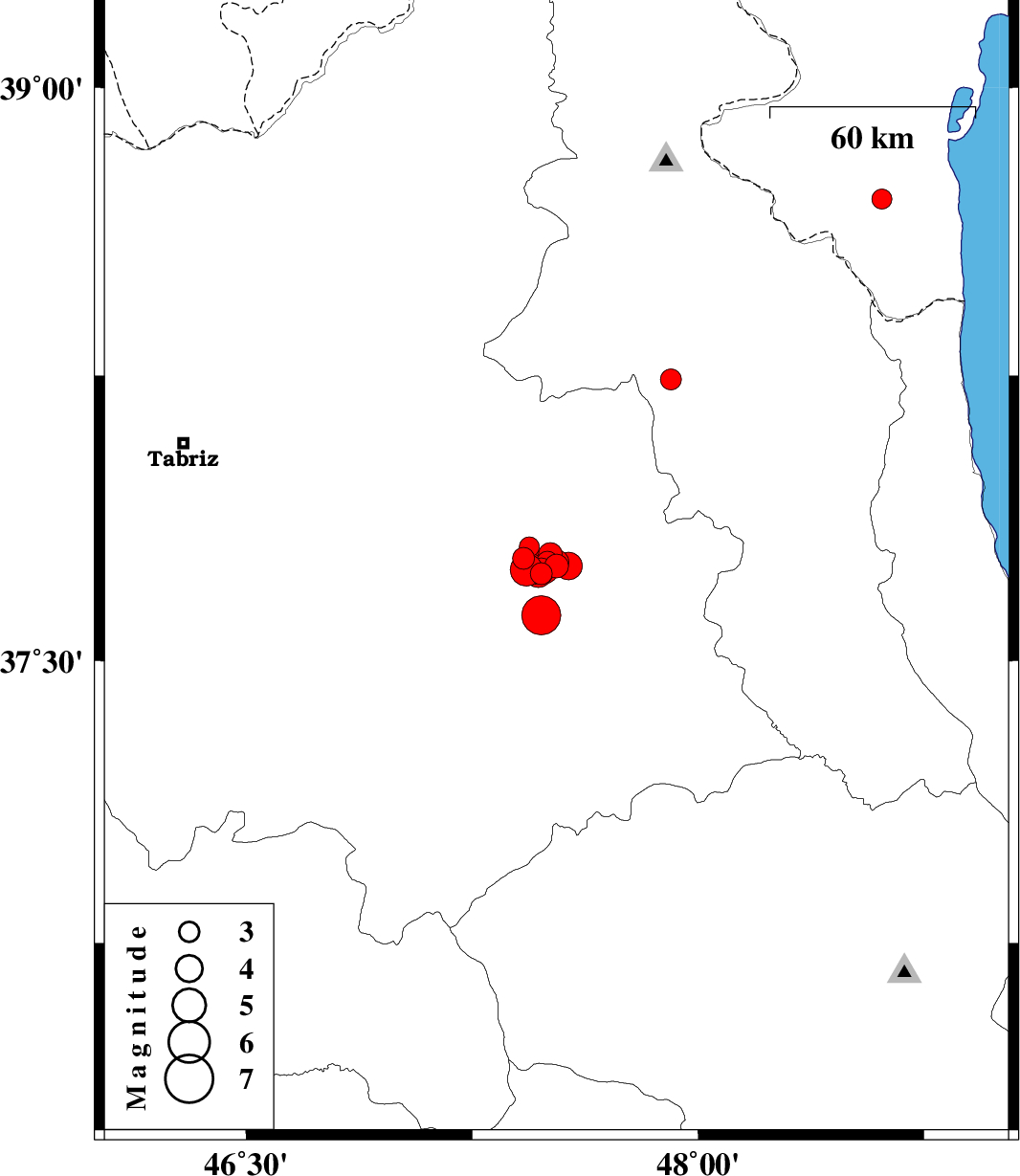 2019/11/07 22:47:05.3 02:17:05.3 37.6247.486 ML:5.8 Azarbaijan Sharghi Province, 35 km South of Sarab