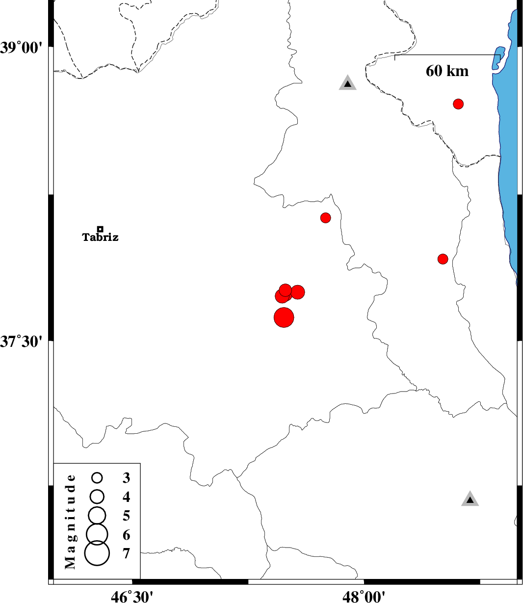 2019/11/07 22:47:05.3 02:17:05.3 37.6247.486 ML:5.8 Azarbaijan Sharghi Province, 35 km South of Sarab