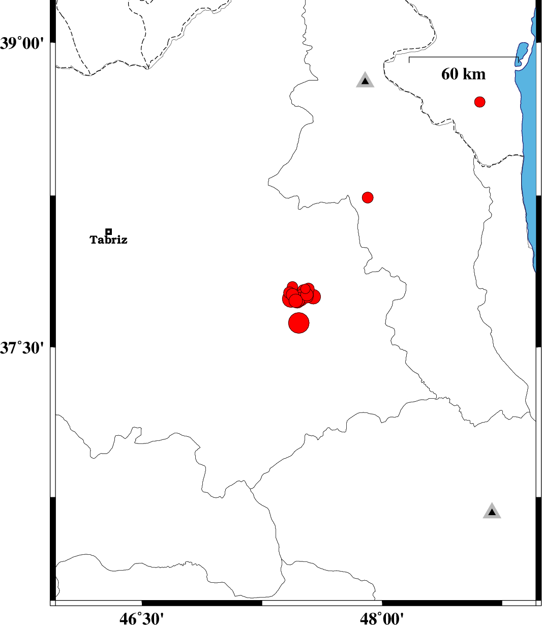 2019/11/09 22:48:52.8 02:18:52.8 37.7347.4614 ML:3.8 Azarbaijan Sharghi Province, 24 km South of Sarab