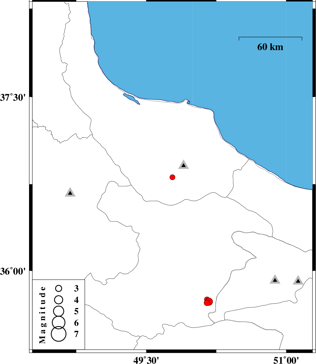 | 2019/12/02 | 23:32:40.4 | 03:02:40.4 | 36.81 | 49.78 | 10 | ML:2.5 | Gilan Province, 32 km -East of Rudbar | ||