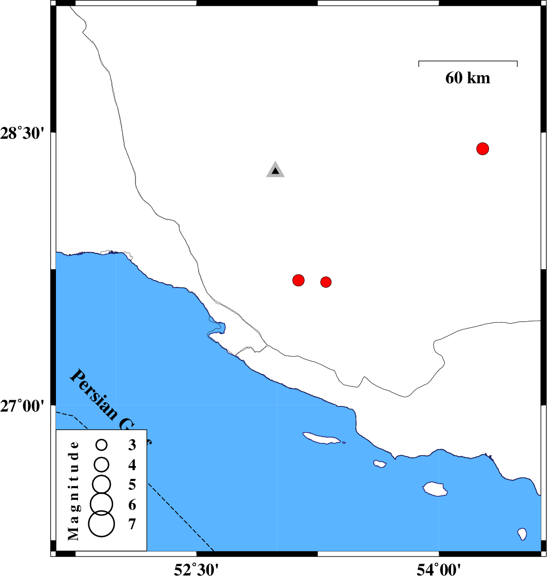 | 2020/05/09 | 03:08:08.1 | 07:38:08.1 | 28.41 | 54.27 | 10 | ML:3.4 | Fars Province, 46 km South-West of Darab |
