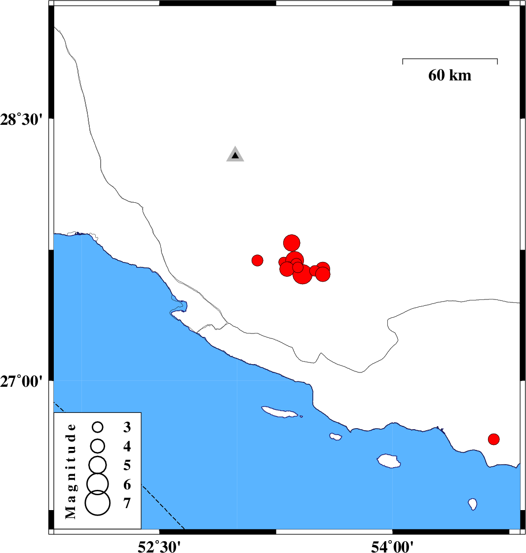 2020/05/11 02:06:49.0 06:36:49.0 27.6853.310 ML:3 Fars Province, 41 km North-East of Lamerd