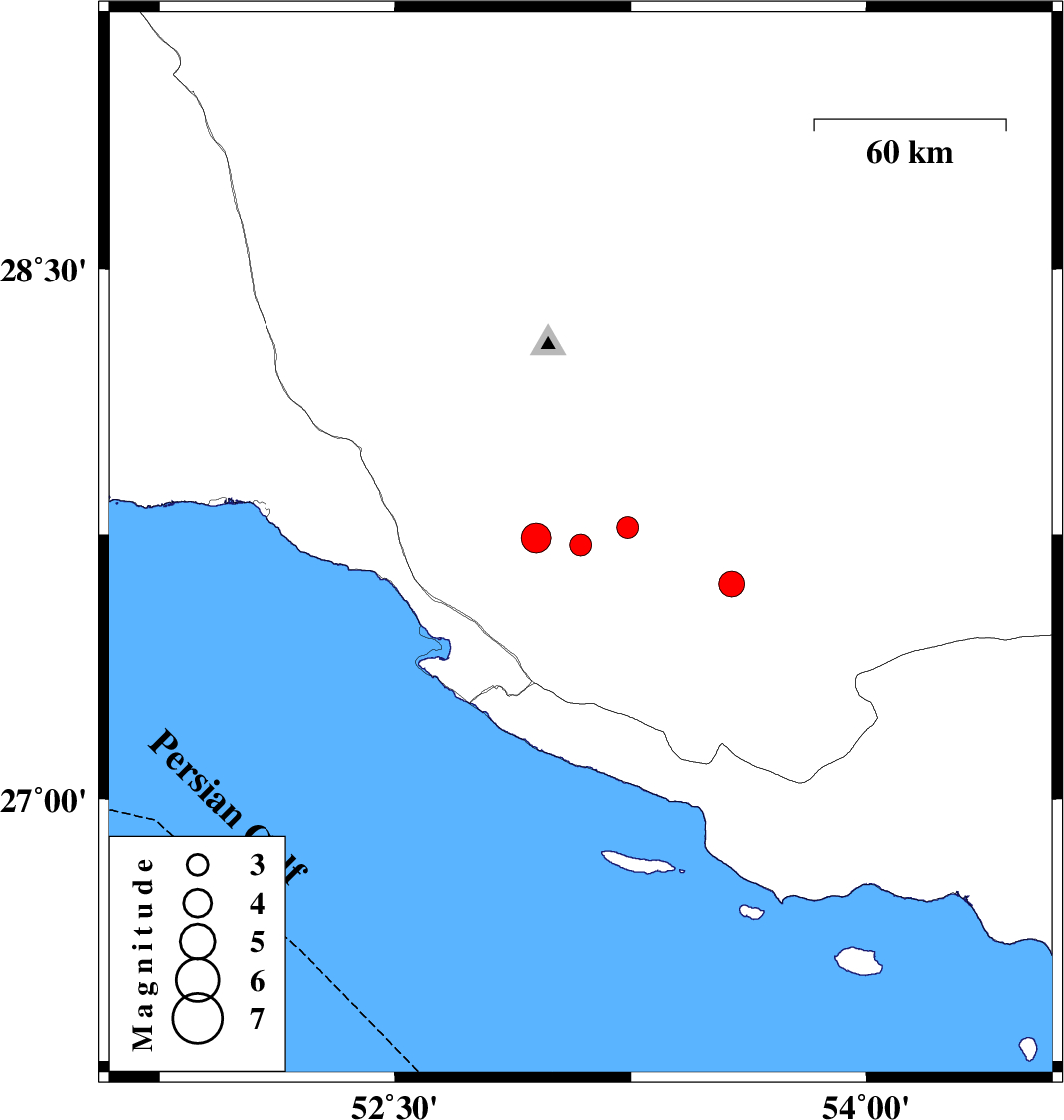 | 2020/07/02 | 00:29:16.7 | 04:59:16.7 | 27.741 | 52.949 | 12 | ML:4.2 | Fars Province, 22 km North of Mehr | ||