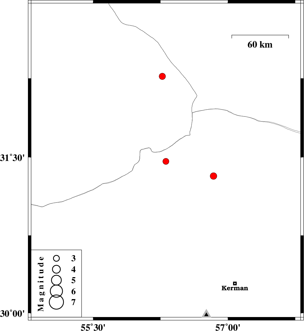 | 2020/07/23 | 20:41:50.2 | 01:11:50.2 | 31.32 | 56.84 | 21 | ML:3.4 | Kerman Province, 7 km of Ravar | ||