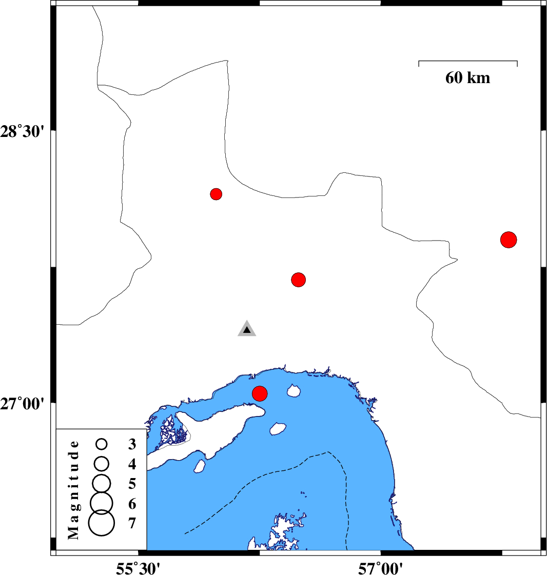 | 2020/07/27 | 11:12:37.5 | 15:42:37.5 | 27.05 | 56.25 | 18 | ML:4.3 | Persian Gulf, 11 km of Qeshm |
